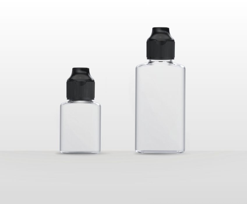 Flacons rectangulaires : 50 ml et 100 ml disponibles en PETG